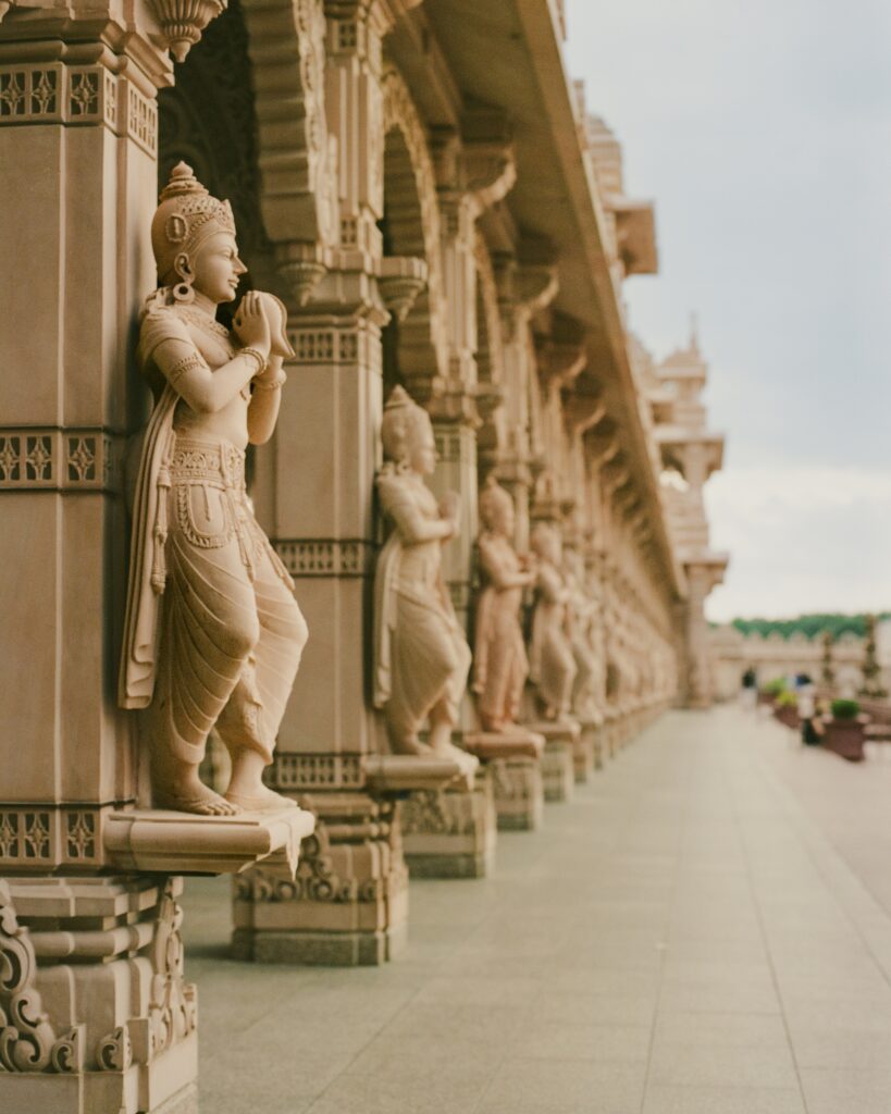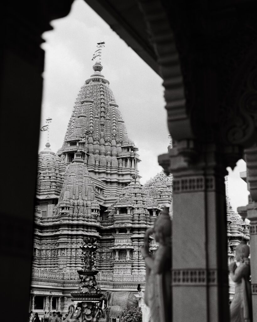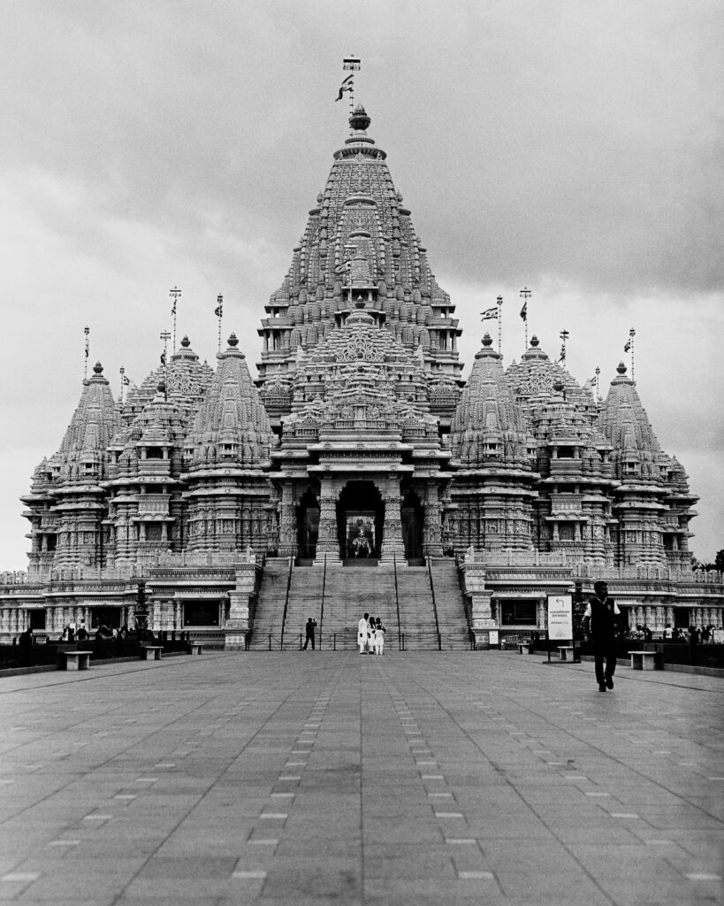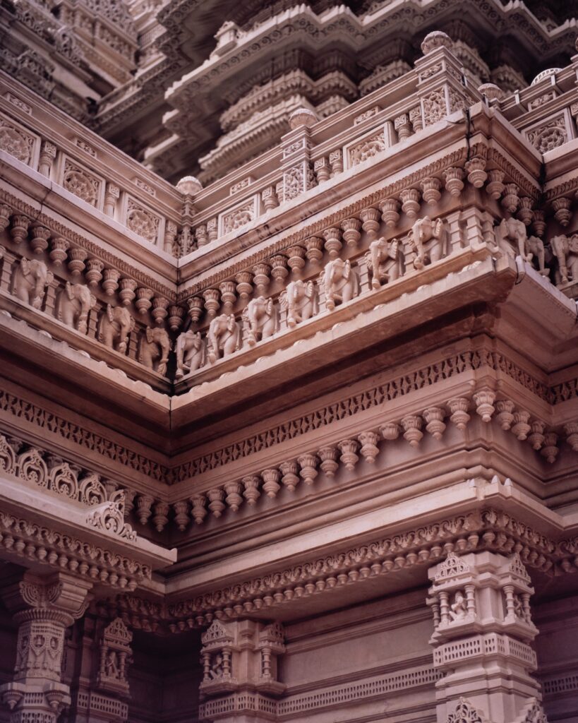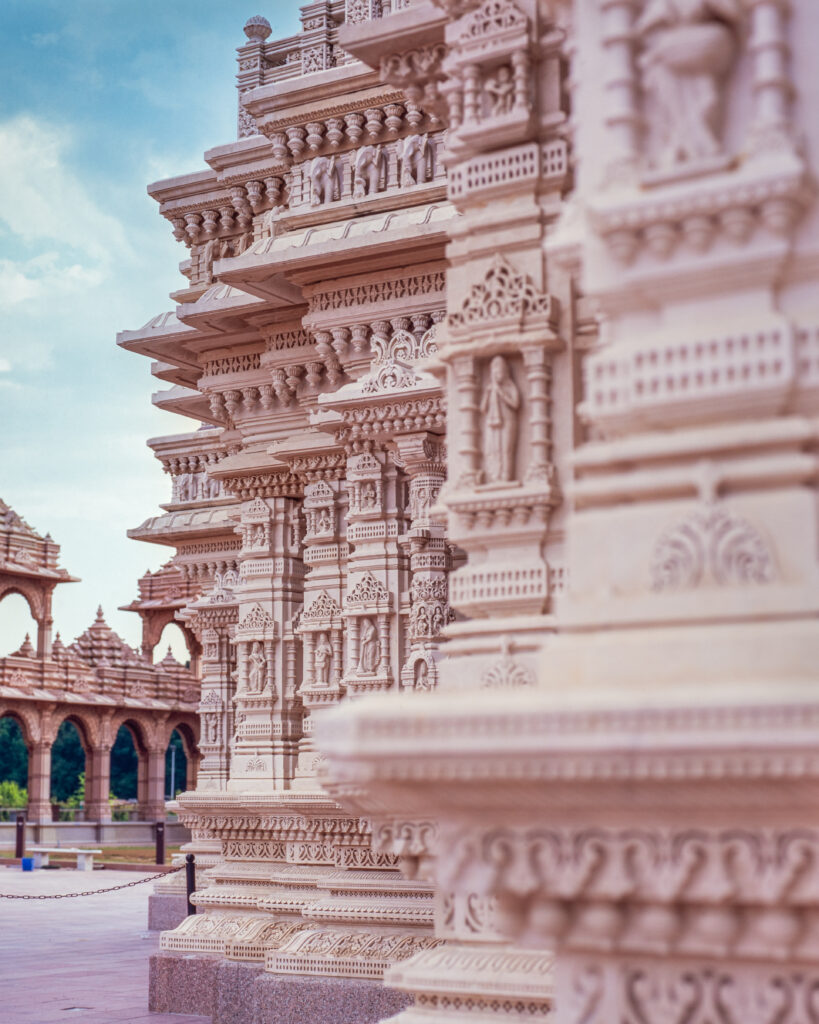 The following photographs show BAPS Swaminarayan Akshardham, a Hindu temple in Robbinsville, New Jersey, in the eastern United States of America. The majority of the photos were taken with the Mamiya RZ67 and 110mm f/2.8 (films used for the images include Fuji Velvia 100, Fuji NPH 400, Kodak Portra 160, and Kodak Tri-X 400), while some were taken with the Nikon FA and 50mm f/1.2 AIS (the film used was Fujicolor 400).