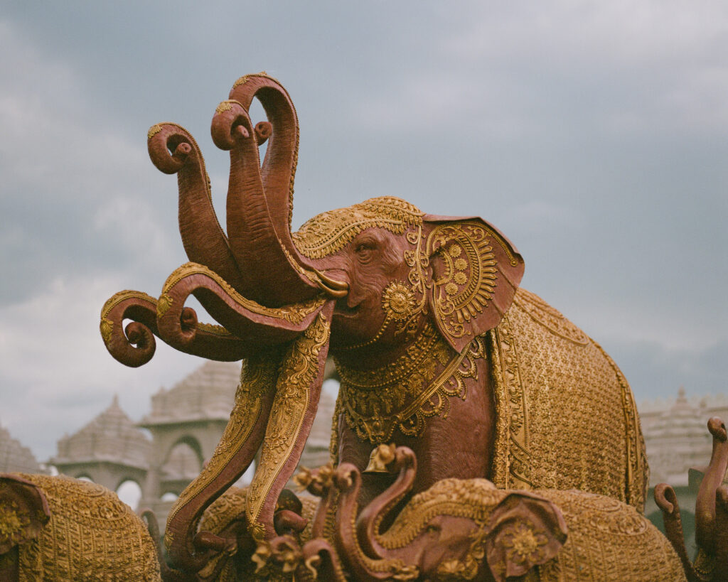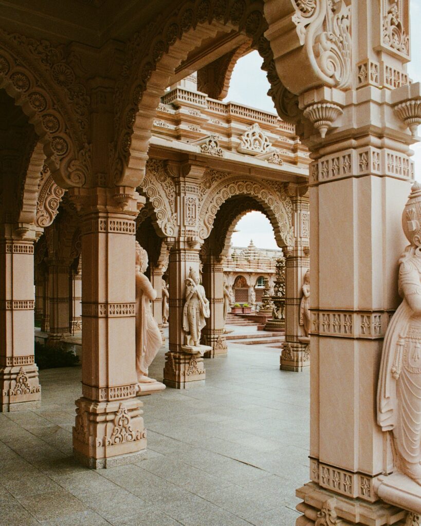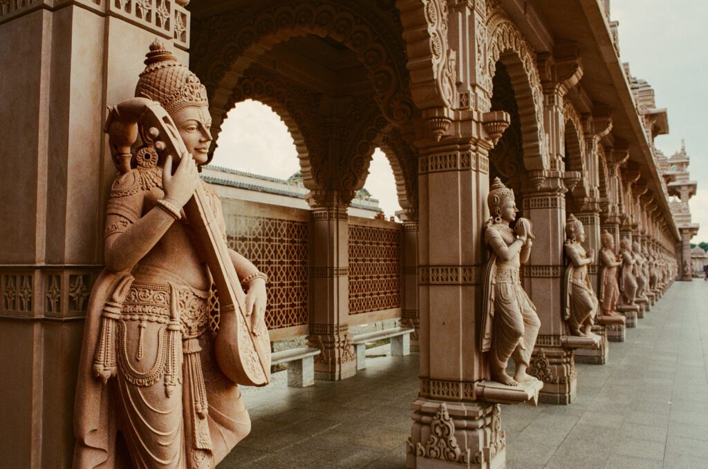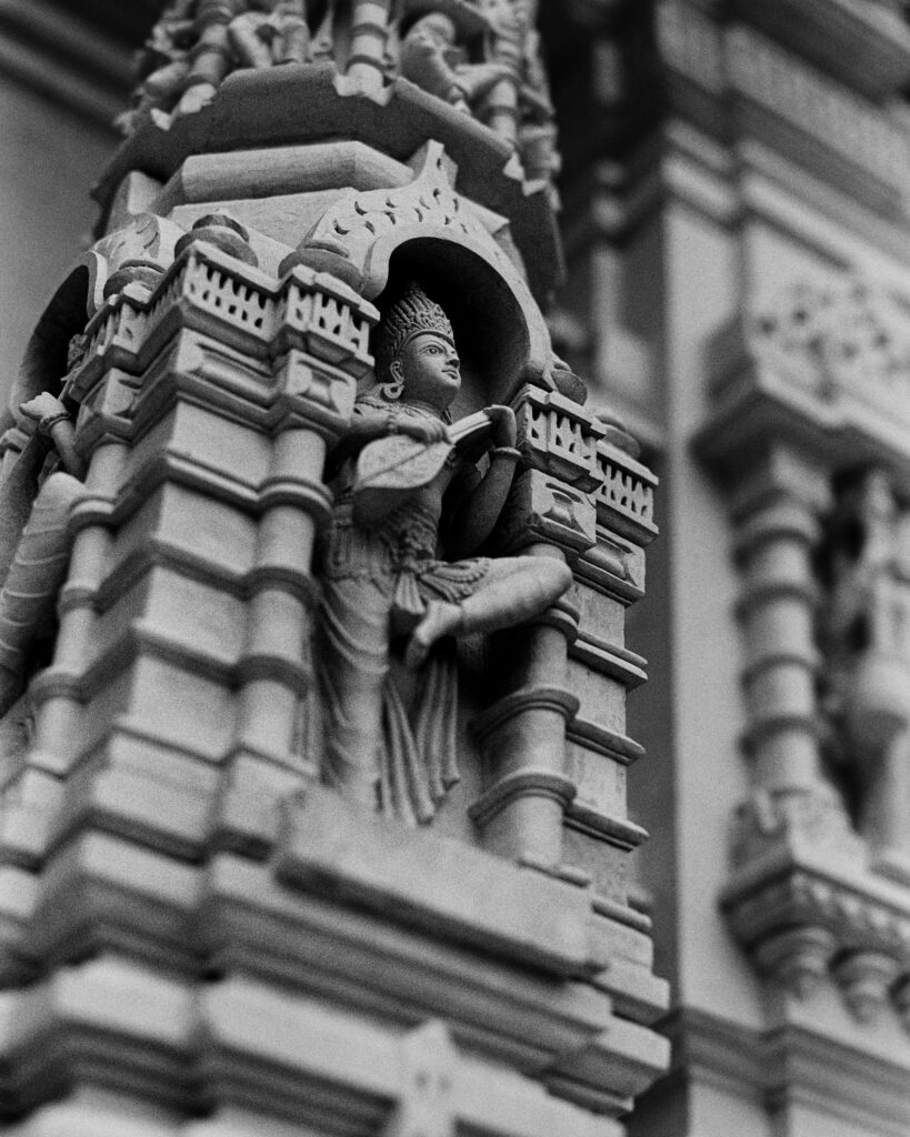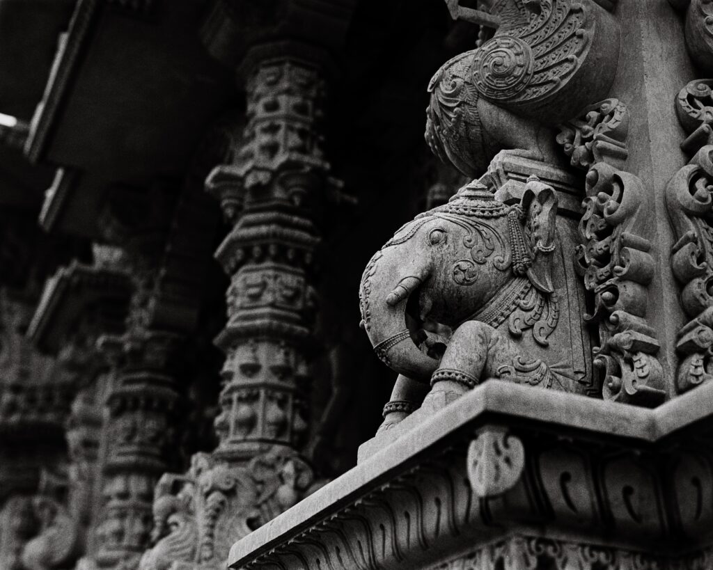 The following photographs show BAPS Swaminarayan Akshardham, a Hindu temple in Robbinsville, New Jersey, in the eastern United States of America. The majority of the photos were taken with the Mamiya RZ67 and 110mm f/2.8 (films used for the images include Fuji Velvia 100, Fuji NPH 400, Kodak Portra 160, and Kodak Tri-X 400), while some were taken with the Nikon FA and 50mm f/1.2 AIS (the film used was Fujicolor 400).